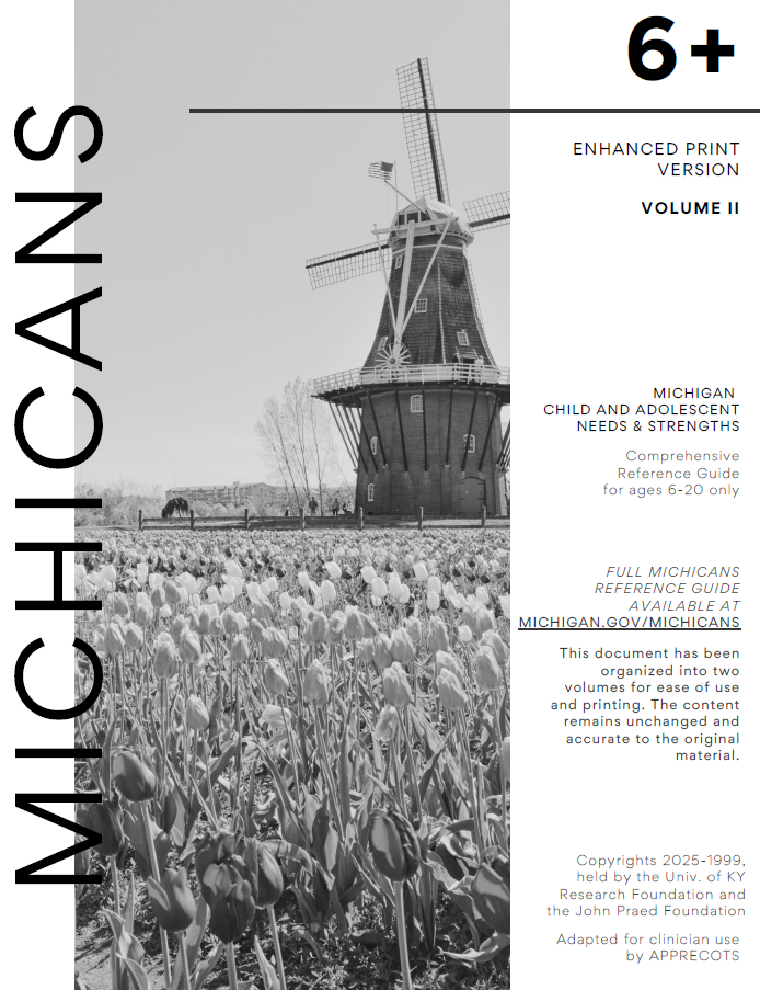 The Michigan Department of Health and Human Services (MDHHS) is implementing a standardized assessment process by using a tool called the Michigan Child and Adolescent Needs and Strengths (MichiCANS). Beginning October 1, 2024, all Community Mental Health Service Providers (CMHSP) and Prepaid Inpatient Health Plans (PIHP) in Michigan will be incorporating the MichiCANS into their access, intake, and service planning processes for children, youth, and their families/caregivers.